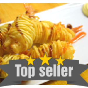 Gamberi avvolti in croccante laccio di patate (5pz). Inclusa una salsa Sushi Art Day.
